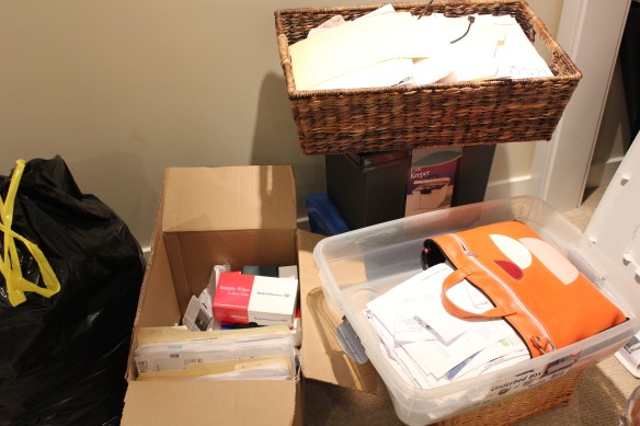 Today I attempted to clean out a closet I’ve been dreading for months. It’s where I’ve been sticking all of my random papers that need filing…without actually filing them. So they are jammed in a variety of bags, boxes, folders – in no particular order.