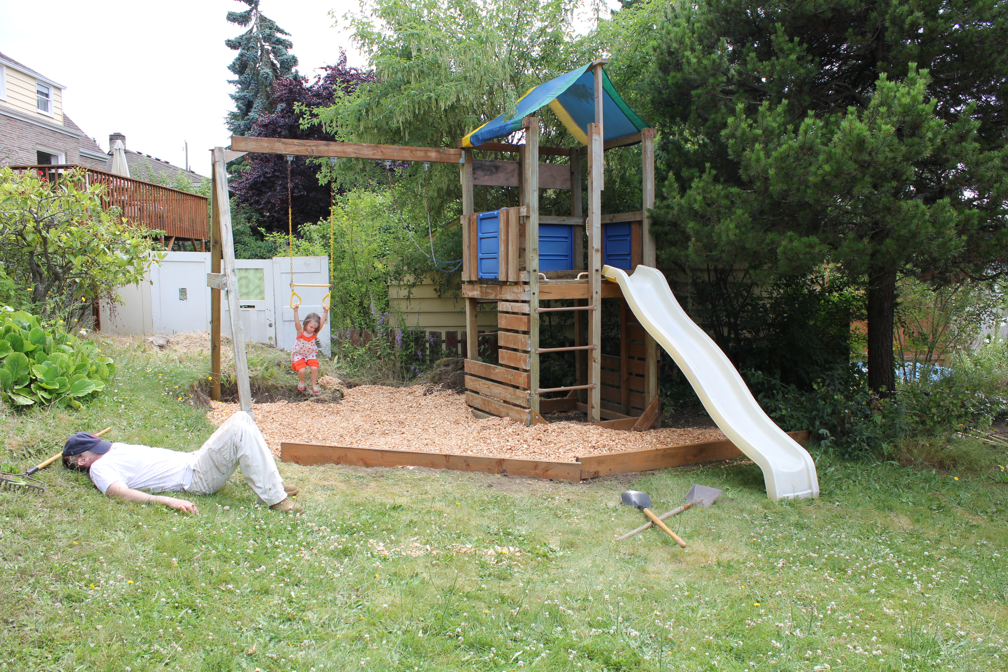 The Napping King in action (granted he earned this one after building a swingset, but the point is – location matters not)