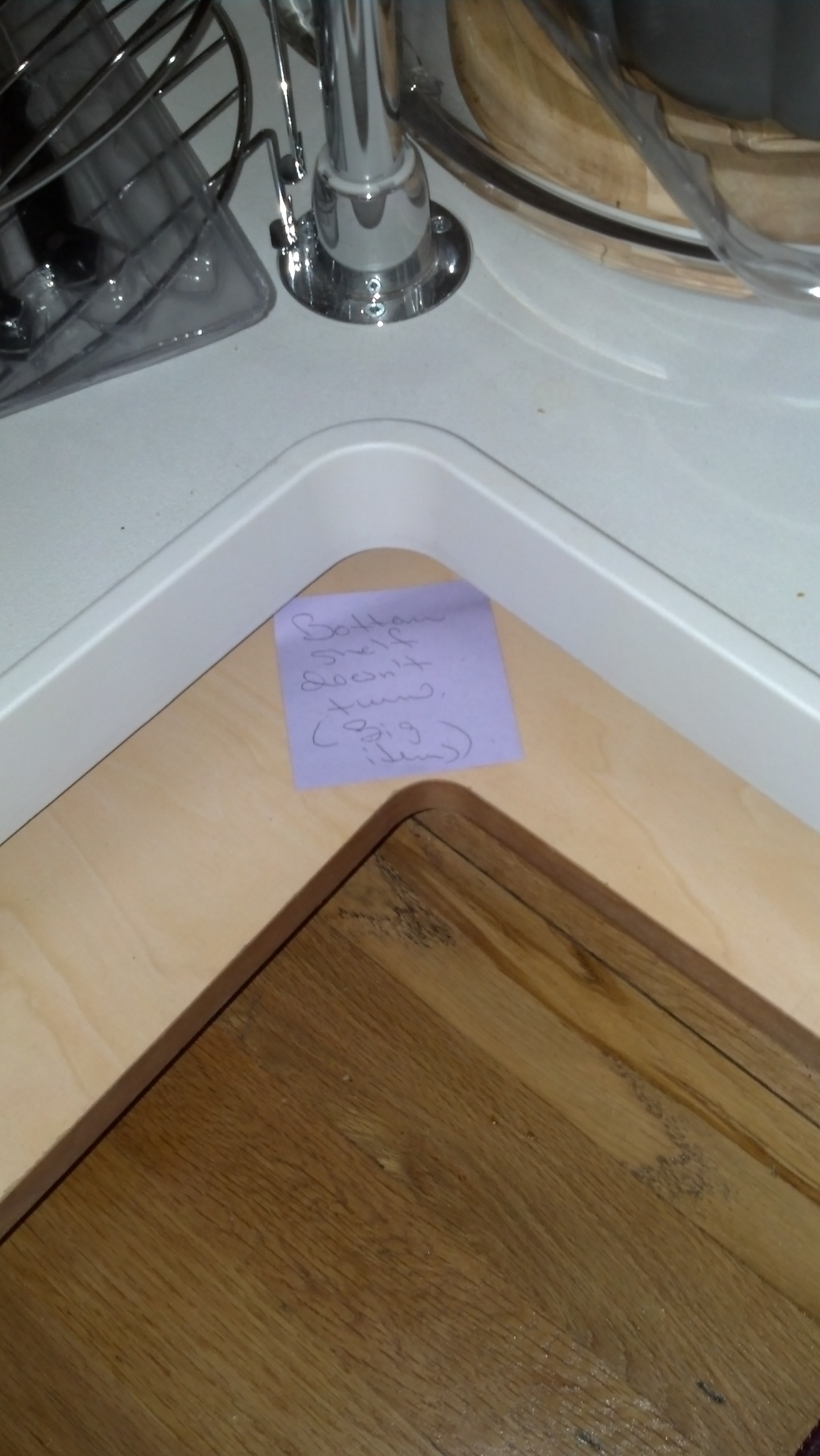 I say ‘reminder’ because she has usually already conveyed the message to you in person or by phone. But just to be safe, she will also put it on a Post-It.