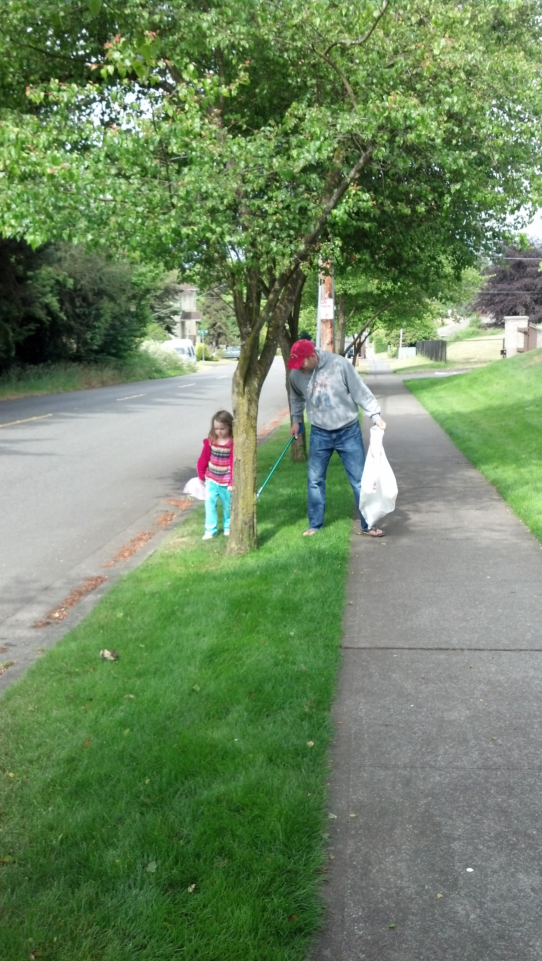 Now we spend our evenings walking around the neighborhood picking up trash. My daughter plays the role of Garbage Scout, running ahead to find wrappers, scraps, and if we’re lucky – the discarded contents of an entire Jack in the Box meal. By the way, WHO are the people in this day and age who finish their meal and then toss the rest out the window?! I guess they are my neighbors, that’s who.
